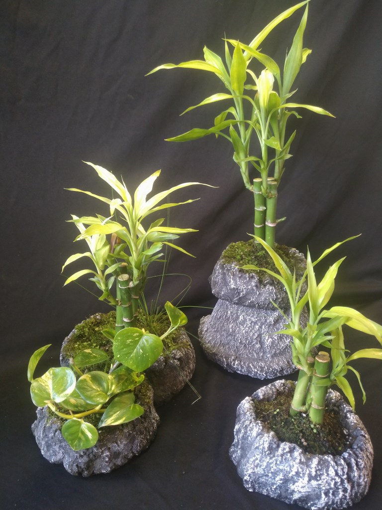 Commonly known as, “Lucky Bamboo” it is related to the common Ti leaf. Ours are planted. Keep moist, medium light ok.