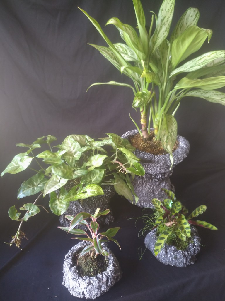 An assemblage of various species. All are ok with low light and regular watering.